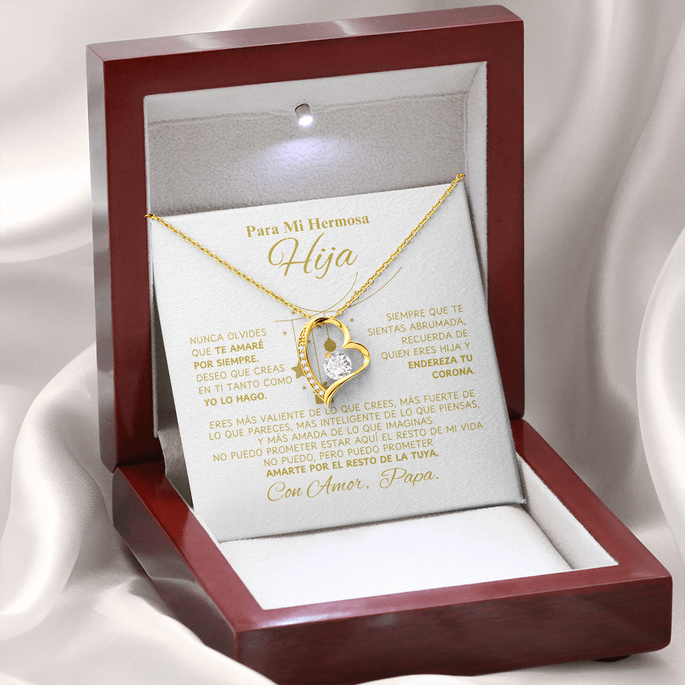 ¡El deslumbrante Collar Forever Love  seguramente hará que su corazón se derrita! Este collar presenta un impresionante cristal CZ de 6,5 mm rodeado por un colgante de corazón pulido adornado con cristales más pequeños para agregar brillo y destellos adicionales. Bellamente elaborado con un acabado en oro blanco o amarillo, asegúrese de darle un regalo clásico que pueda disfrutar todos los días.